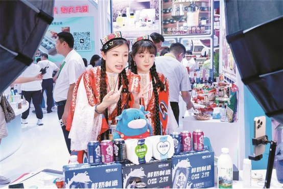 本届消博会,新疆天润乳业销售有限公司带来了5个品系的产品,其中奶啤和酸奶两个品类最受线上消费者欢迎。卢奎介绍:“今年我们重点推介的是新上市的‘洛入梅好’爱克林酸奶和减糖奶啤,前者主打酸甜融合的口感,后者则顺应了当下健康消费的趋势。这两款产品在直播间的复购率表现都特别好。”